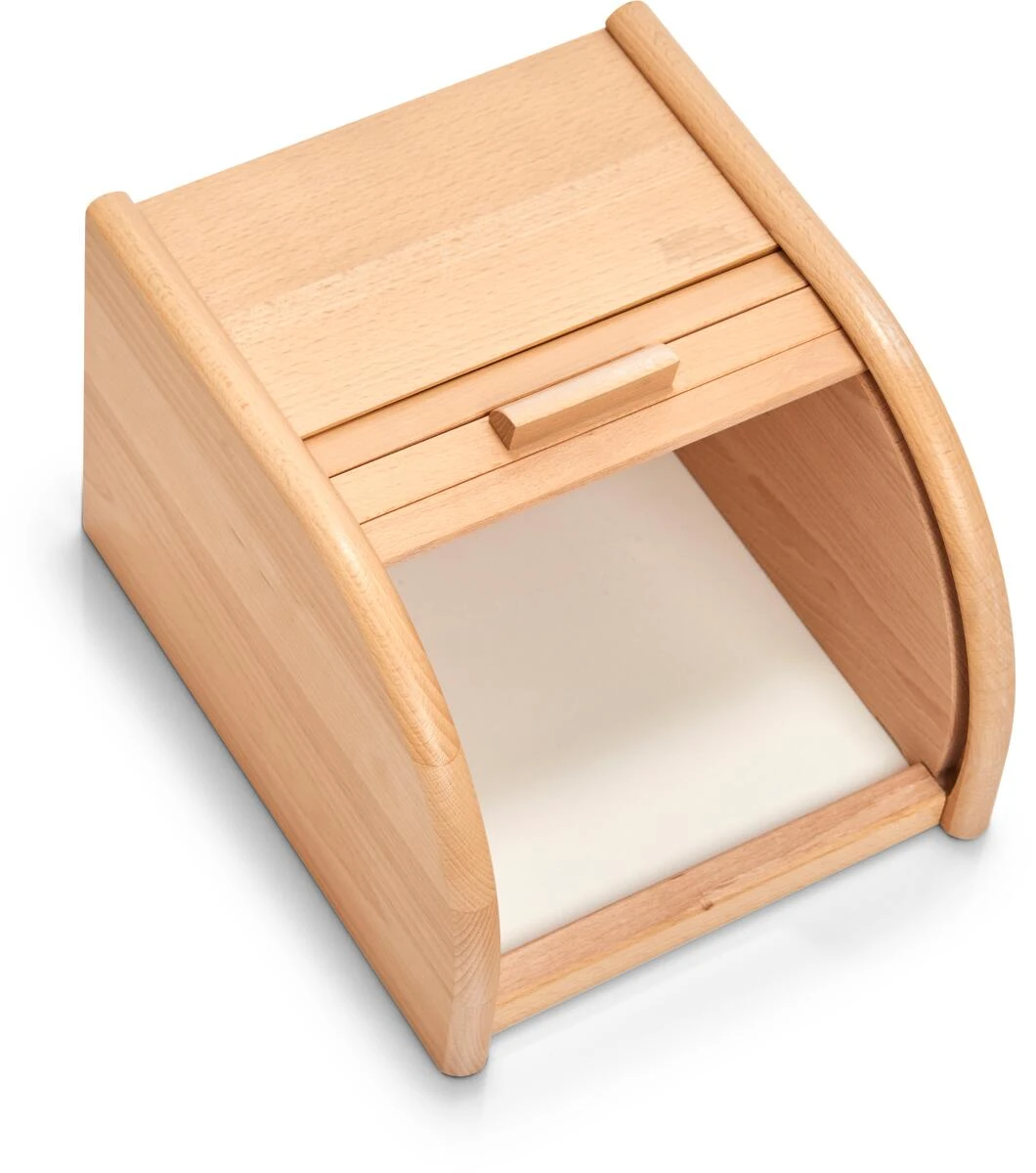 In diesem schönen Brotkasten aus massivem Buchenholz bleiben Ihr Brot und Ihre Brötchen lange frisch und schmackhaft! Der Brotkasten ist zur Erhöhung der Lebensdauer und zur besseren Hygiene mit einer hochwertigen Lackierung versehen. Der Boden besteht aus beschichtetem und besonders pflegeleichtem MDF. Aufgrund seines klassischen Designs ist der Rollbrotkasten ein Blickfang in jeder Küche.
